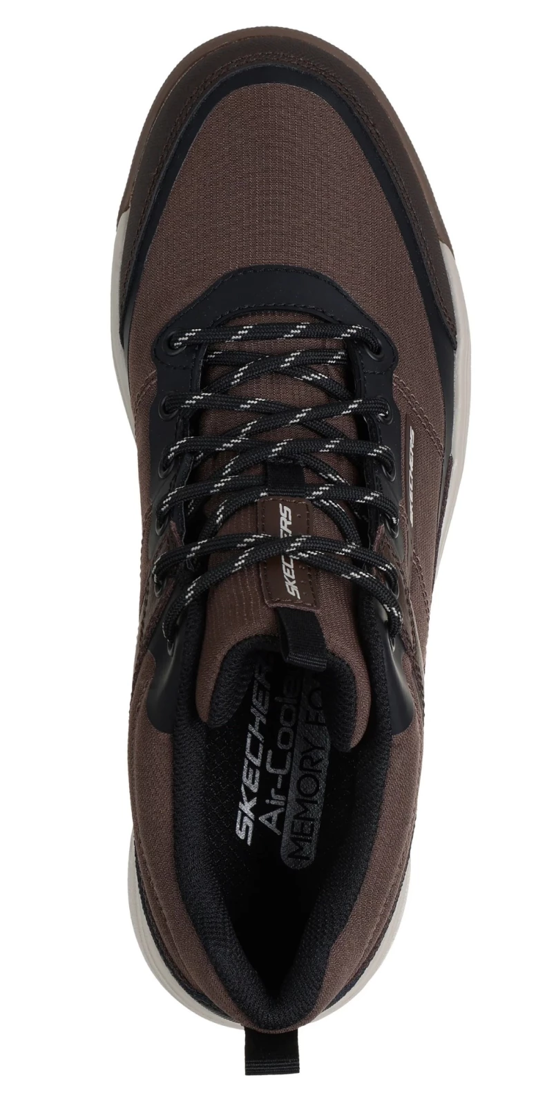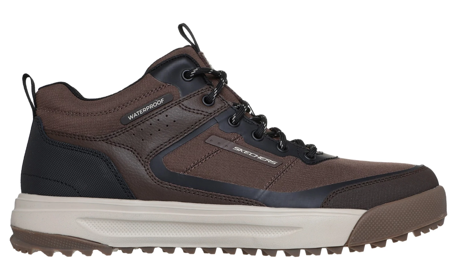 Ez a vízhatlan túracipő bőr és szőtt szövet felsőrésszel, elöl fűzővel, Skechers Memory Foam™ talpbetéttel és kiváló tapadást biztosító külső talppal készült.